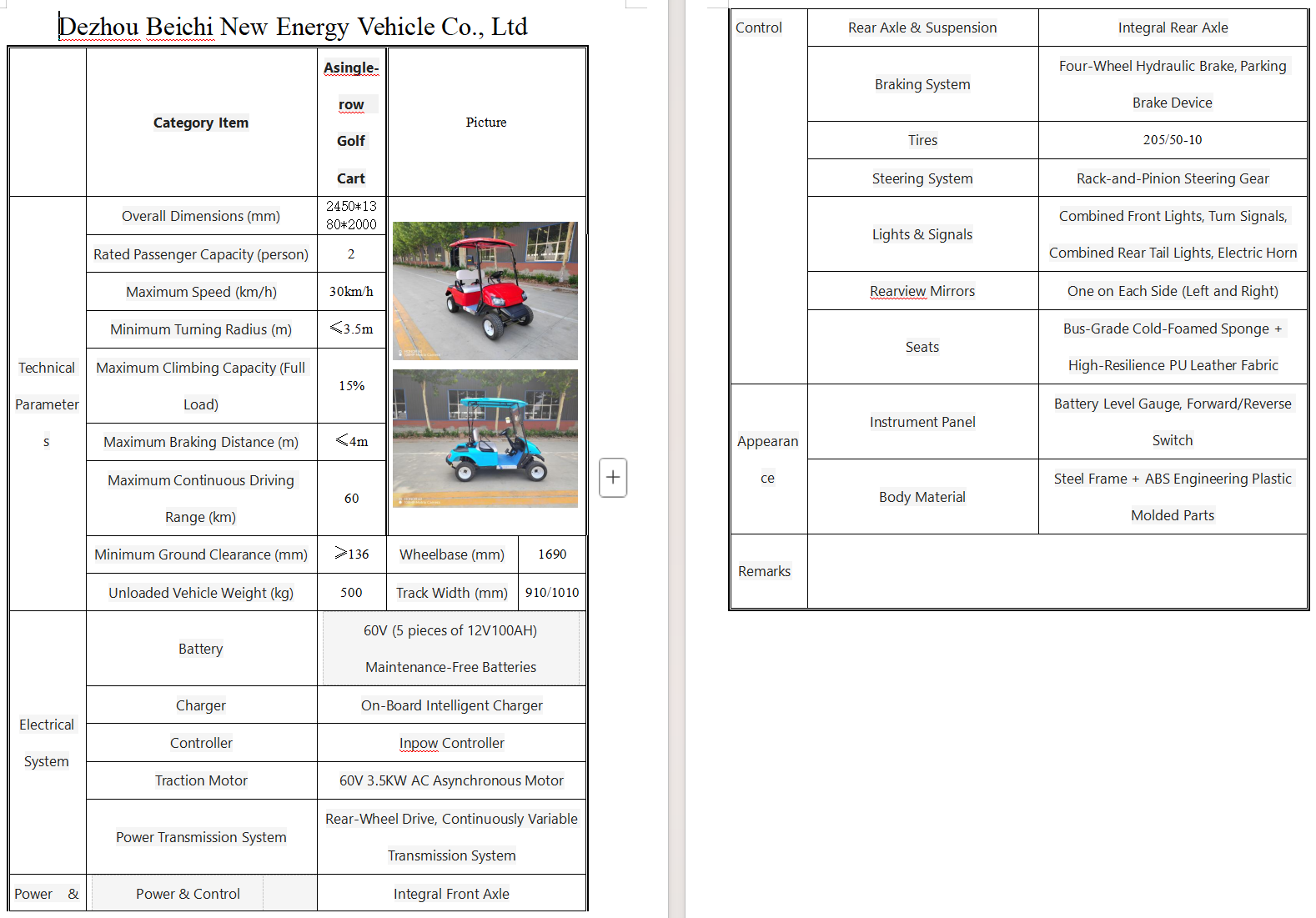 1 Single-row Golf Cart